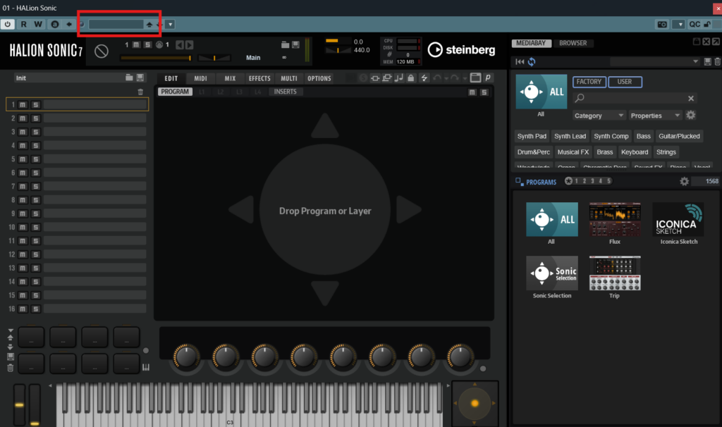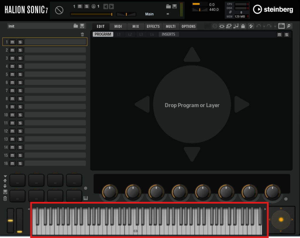 ただし、インストゥルメントを読み込んだだけでは音が決まっていない状態なのです。