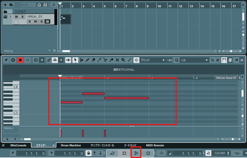 ピアノロールにノートを打ち込んで再生