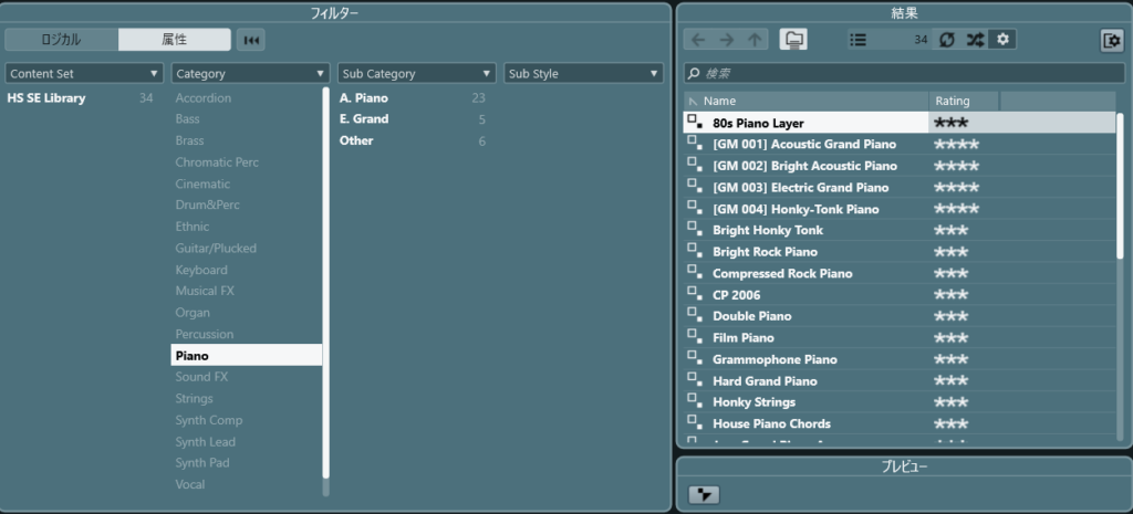 例えば HALion Sonic の場合、プリセットには