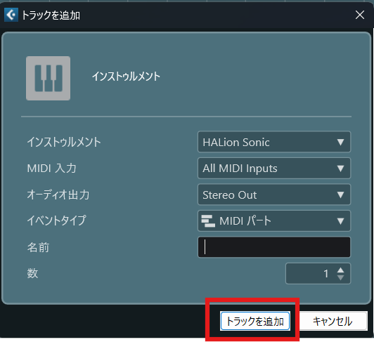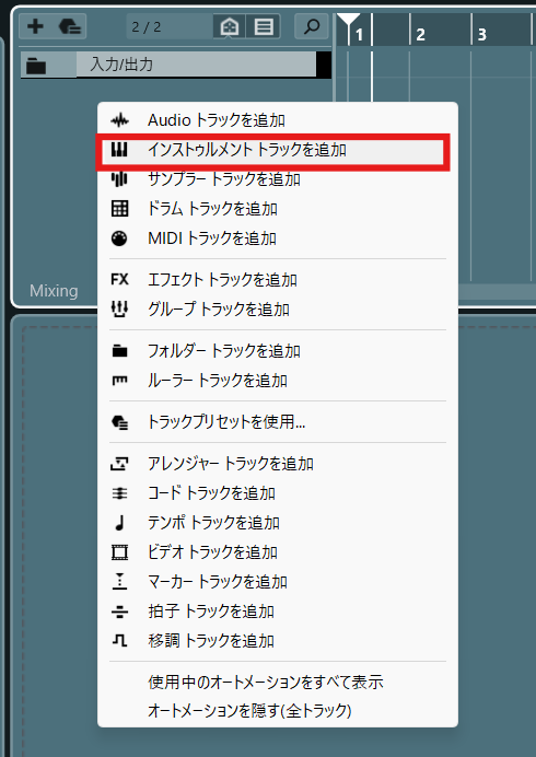 - インストゥルメントトラックを追加